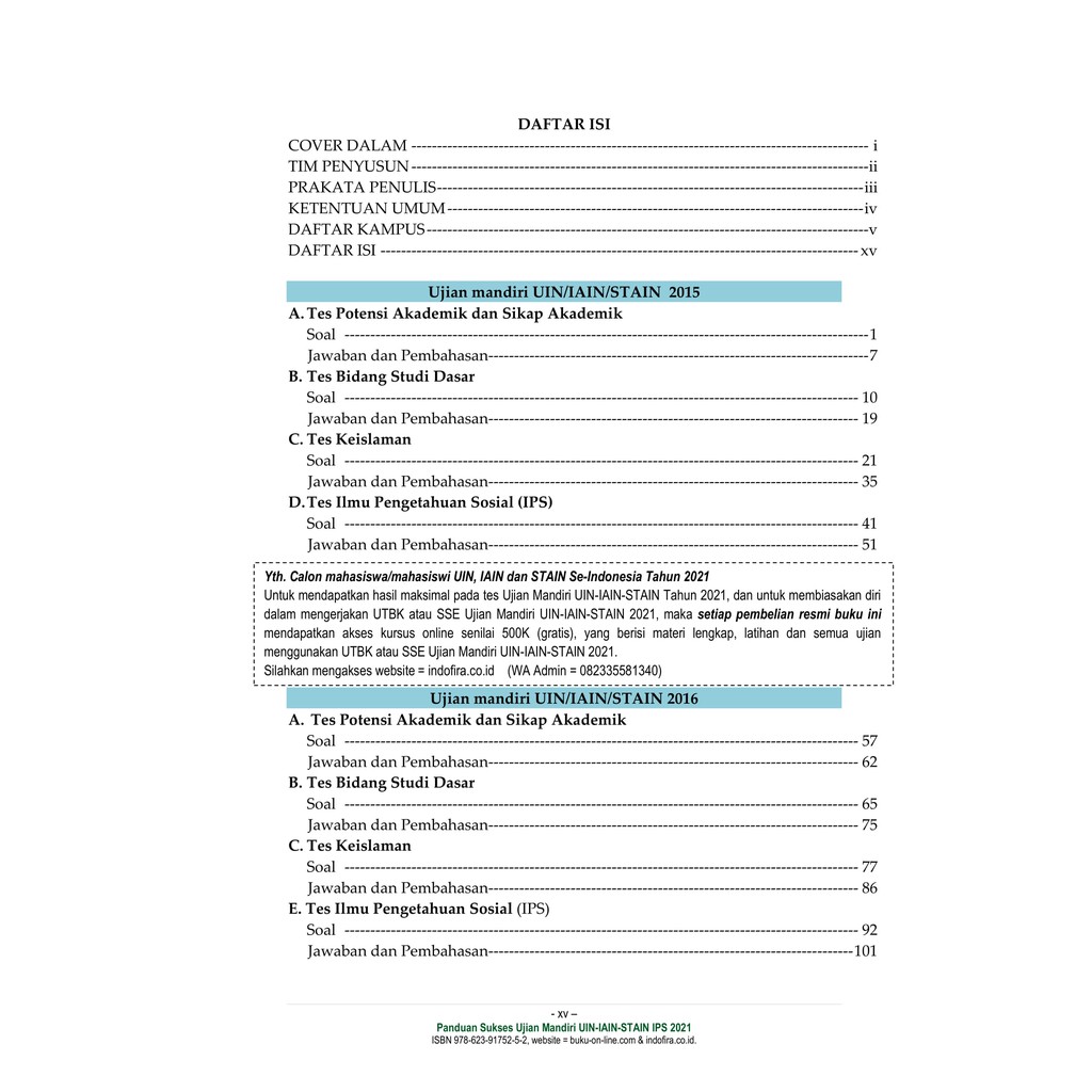 Buku ujian mandiri uin/iain/stain 2021 berguna untuk persiapan spmb mandiri atau jalur mandiri di ptkin se indonesia, seperti uin, iain maupun stain. 16 pendaftaran online jalur mandiri uin. Buku latihan soal ujian mandiri uin/iain/stain ipa 2021 di tokopedia ∙ promo pengguna baru ∙ cicilan 0% ∙ kurir instan. Contoh soal spmb mandiri uin syarif hidayatullah dan contoh soal seleksi jalur ujian mandiri uin jakarta tahun 2021/2022, soal usm uin . Soal ujian mandiri uin iain stain juga relatif jarang.